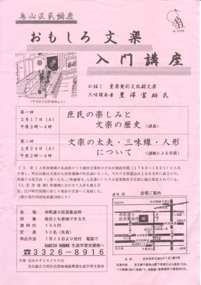 Fおもしろ文楽入門講座 人形浄瑠璃文楽・三味線
