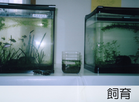 ヤゴの掲載された図鑑や実体顕微鏡を用意し、興味を持った子供や、早々にたくさんのヤゴを救出して盛り上がってきた子供に